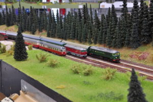 Projíždím layout. Vedle je nádherná zastávka Osiek. Dále stanice Kobier — ve výstavbě. Zajímavý a pěkně zpracovaný Boreczek. Pěkný betonový viadukt má trochu sešlejší krajinu — je vidět, že je to už docela veterán. Pak zastávka Balin a šup přes viadukt, který se klene nad hlubokým údolím řeky (nezeptal jsem se na jméno). Modul, který jde z toho metru až na zem, je hlavní návštěvnickou atrakcí. Pod mostem je hospoda, teče tam pravá voda v řece, právě probíhá svatba. Tedy přesněji řečeno svatba probíhá tak 15x za den. Za chvíli mi to leze krkem a jdu nahoru na most s myšlenkou, že skočím dolů na stoly restaurace a ukončím to trápení. Naštěstí mě zachraňuje šotouš na mostě, který mě upozorní na právě projíždějící vlak mého synka. A jsme zpět v Gubinu a hurá domů na Slovensko. V Lietavské se už domlouváme a svatební pochod není tak slyšet. Ale most u diváků opravdu vedl, to musím uznat. Jezdila po něm i auta (ani jsem nevěděl, že se Faller vejde i do IFy), byl tam ohňostroj, zpívali ptáci v lese…