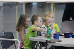 Snídáme a pak doděláváme DCC. Pořád musím řešit spory juniorů, kdo bude kdy smažit na počítači…